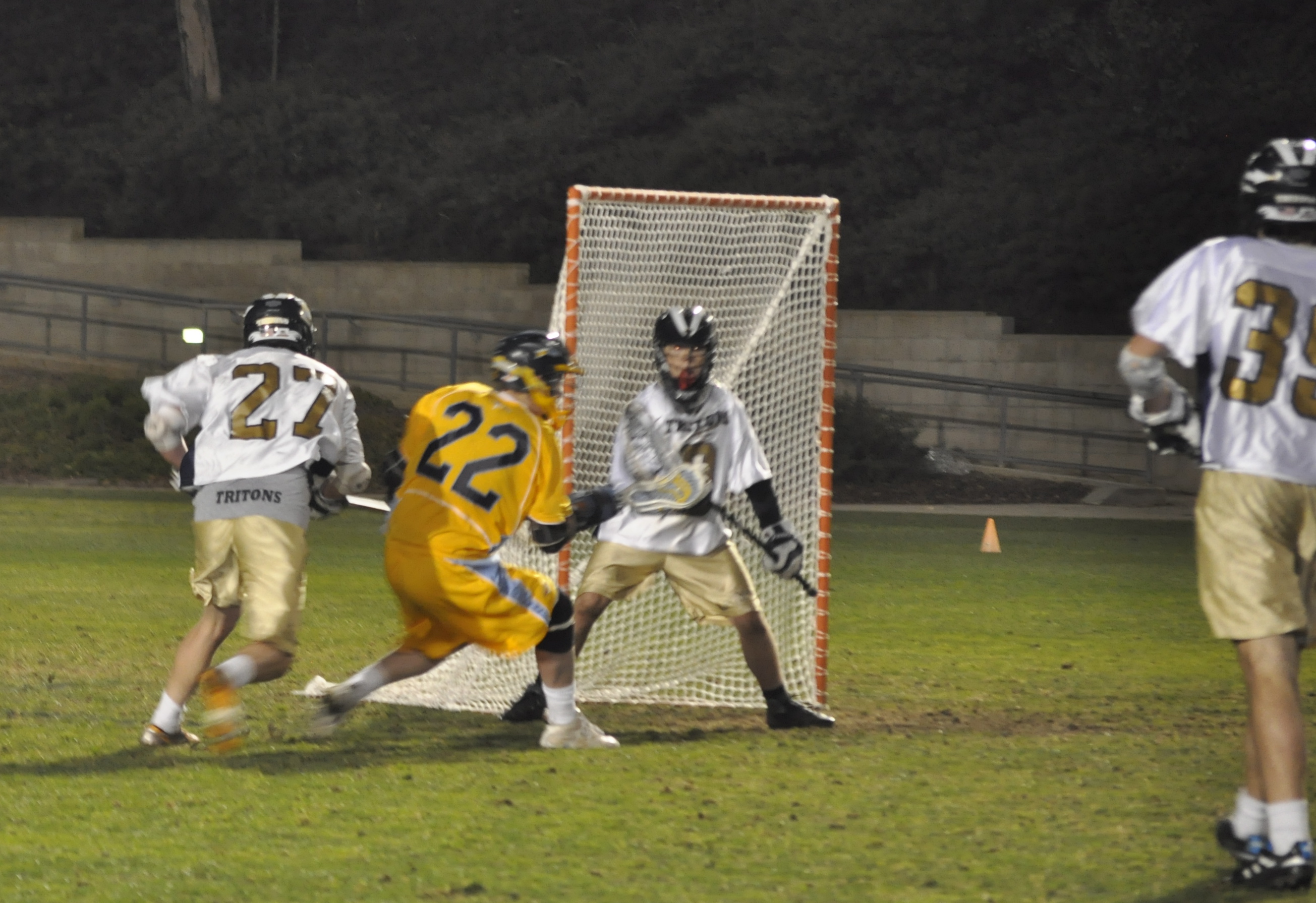 On a chilly Tuesday night at the University of California SanDiego the Fort Lewis Skyhawks club lacrosse team defeated UCSD 14-11 to move to 3-0 on the season. The Skyhawks were led by Senior Kevin Harkey’s 5 goals and 2 assists. Freshman Bradey Hall was awarded the game ball for his outstanding 4 goal, 1 assist effort. The game was tied 4-4 in the first half, but the Fort took over the game with a 5-1 third quarter effort. The UCSD Tritons came back with a vengeance and some home field pride in the fourth quarter, bringing the score as close as 13-11 with just over two minutes left. Kevin Harkey and Paul Larson sealed the Fort victoey with a short-handed goal in transition with only 3 seconds left to play.